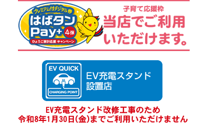 EV充電スタンド改修工事に伴いご利用休止のご案内