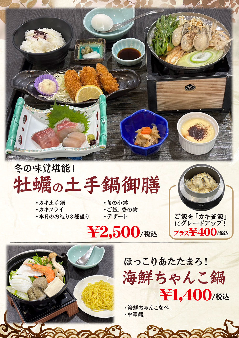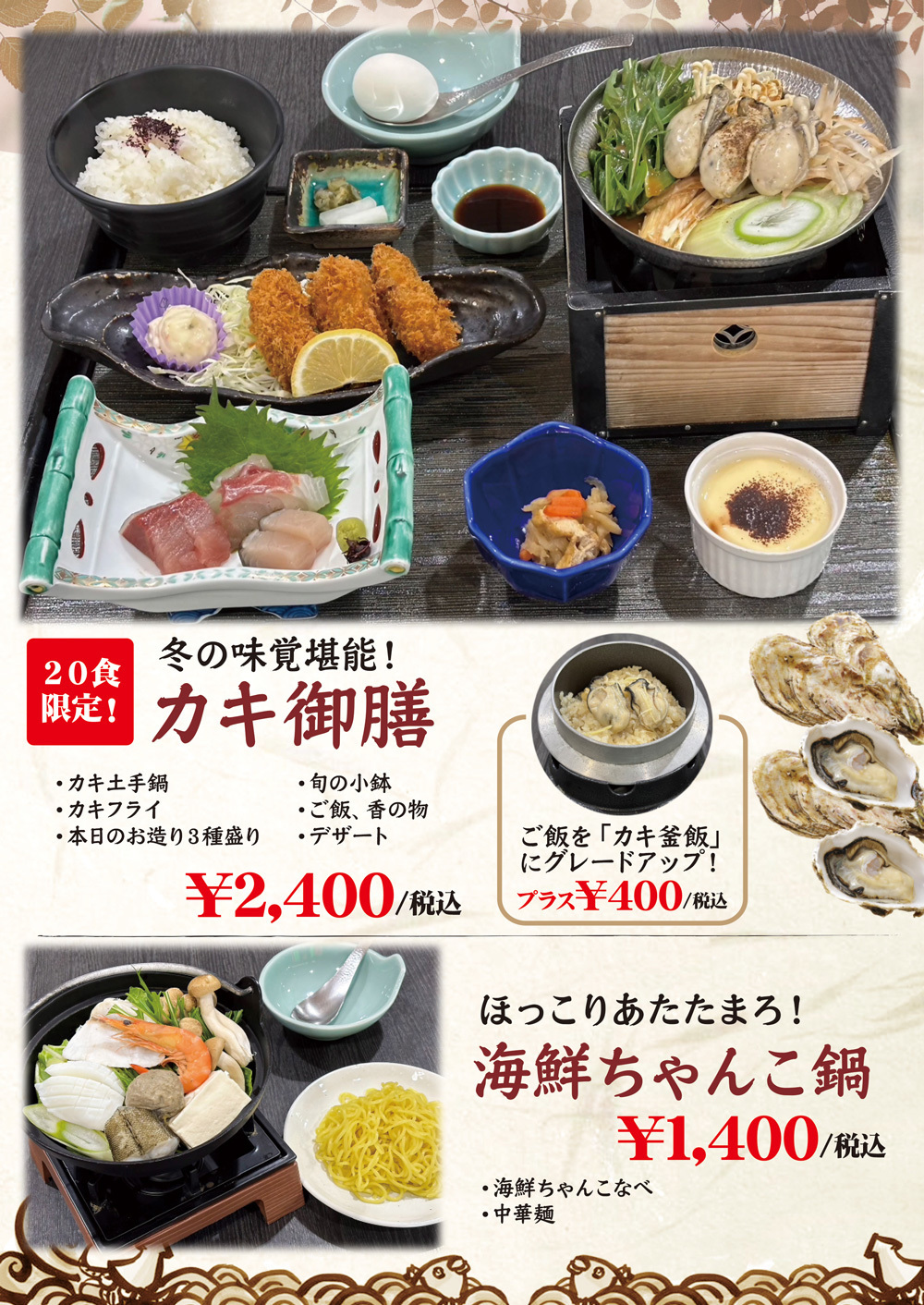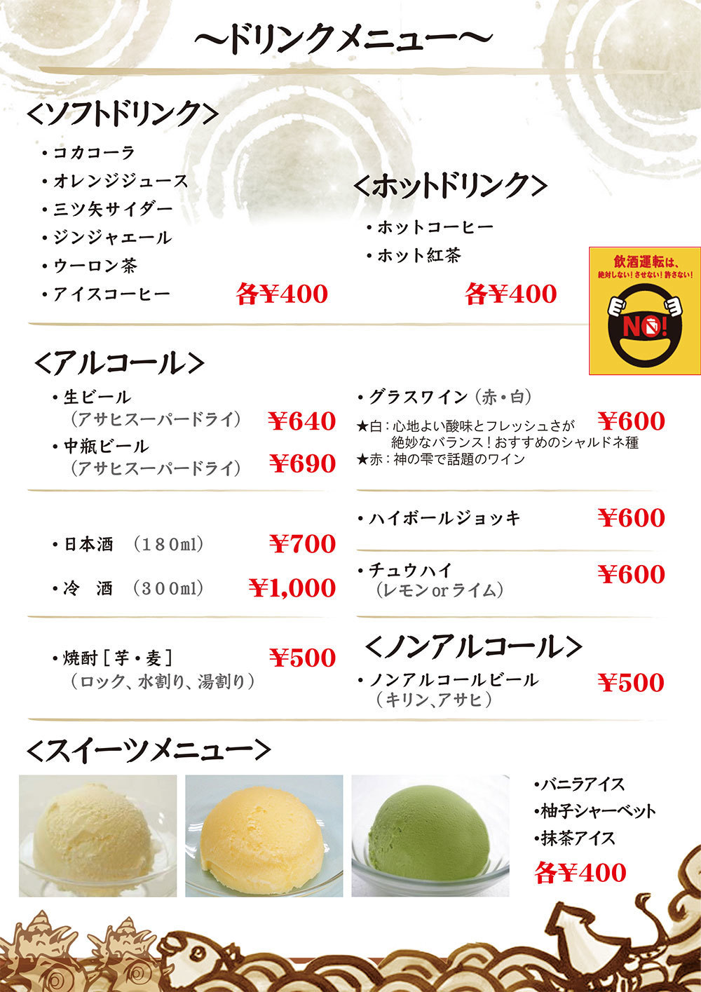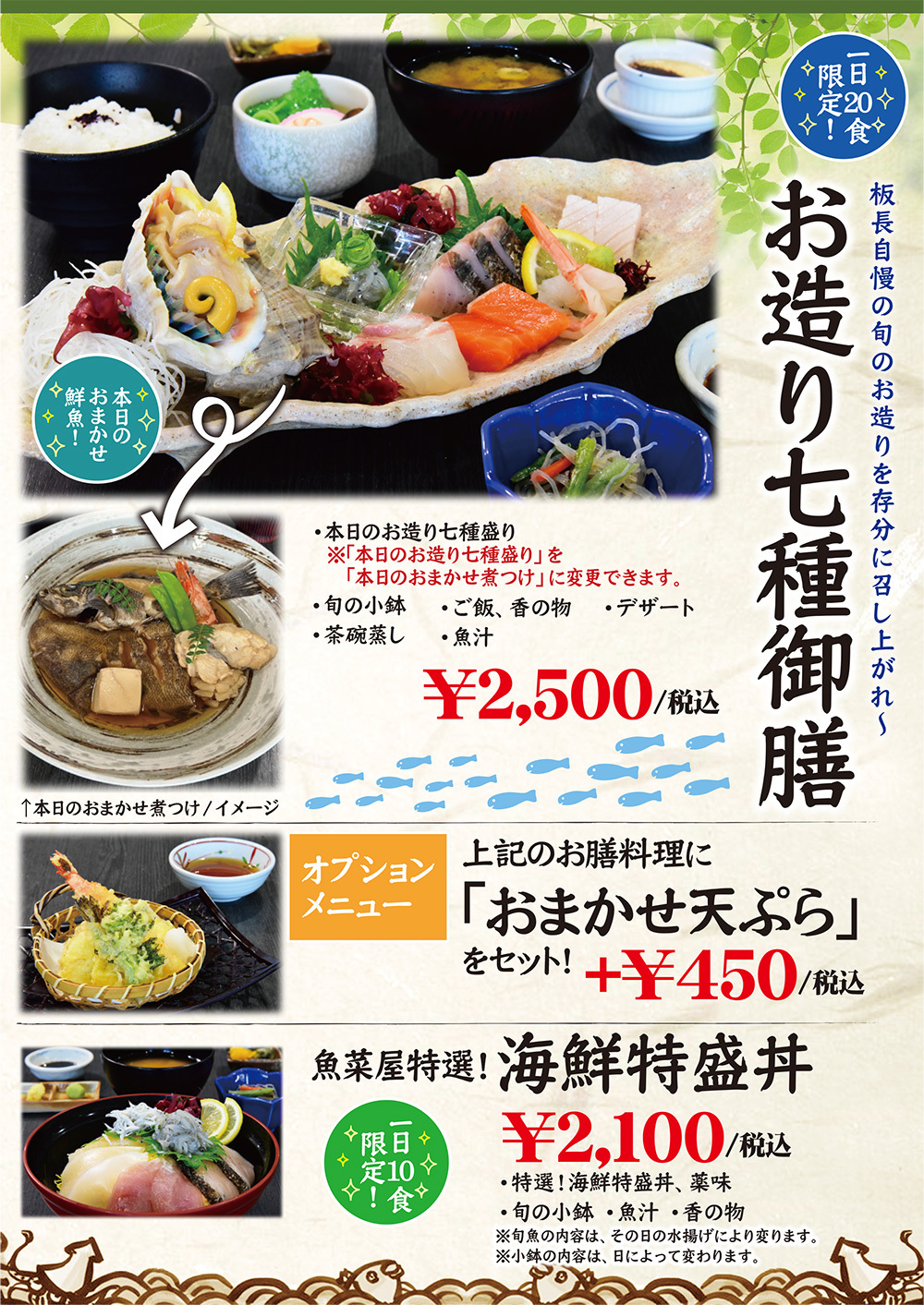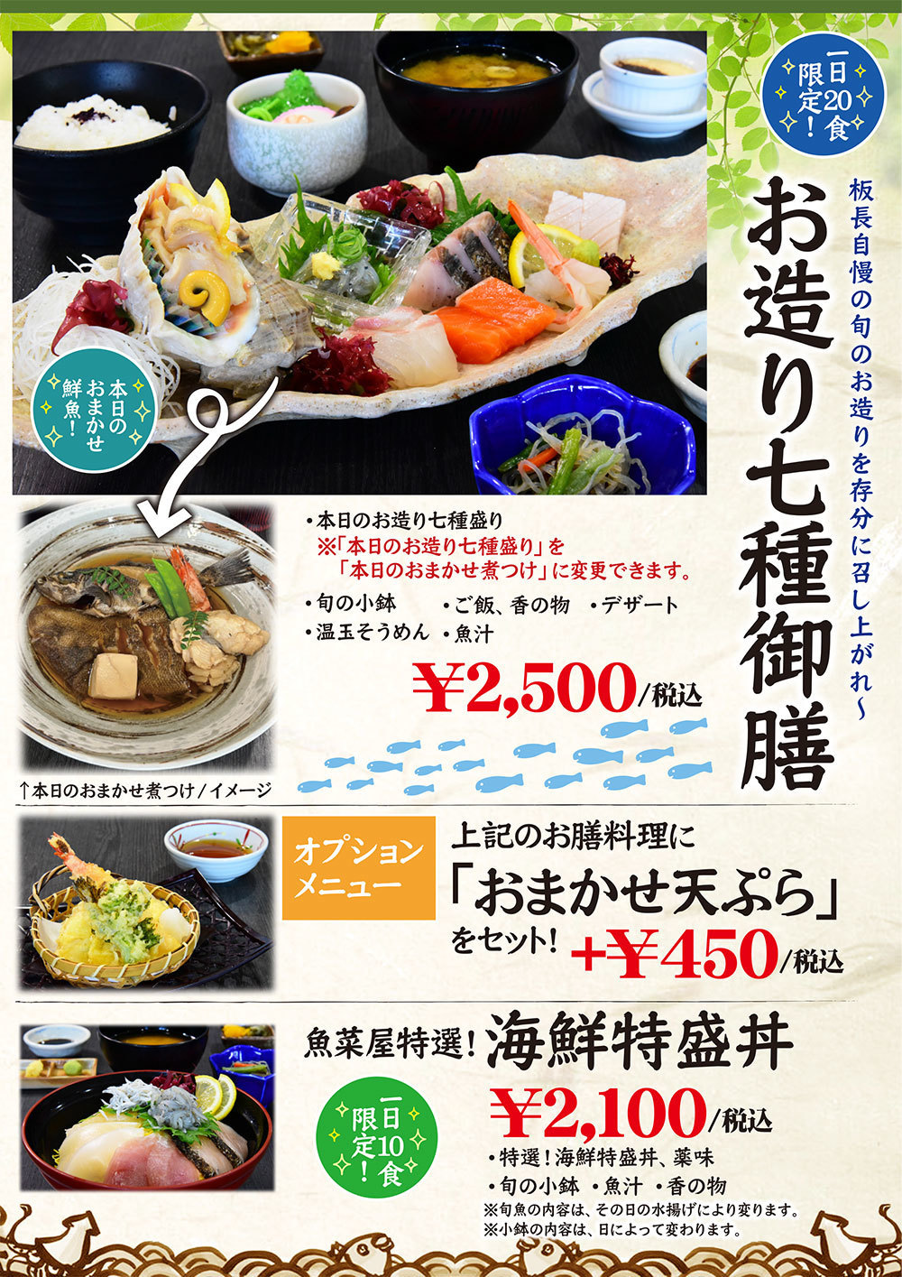 レストラン魚菜屋では食品事故防止の観点より飲食物の持ち込みはご遠慮いただいております。