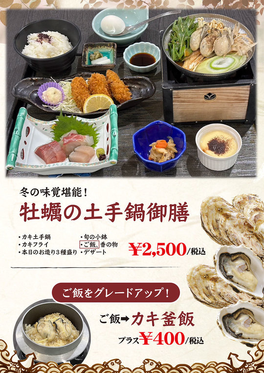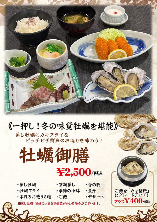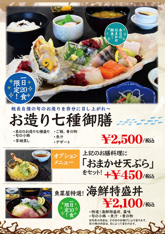 レストラン魚菜屋では食品事故防止の観点より飲食物の持ち込みはご遠慮いただいております。