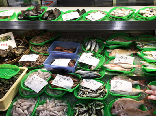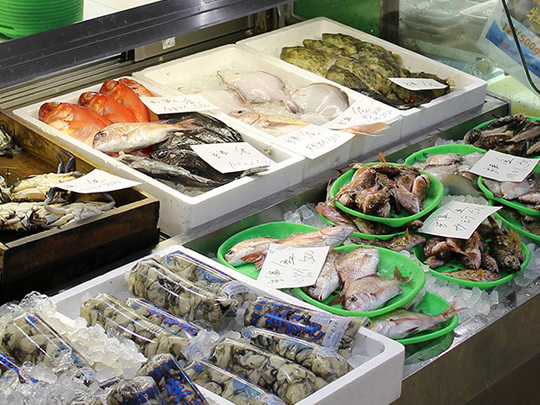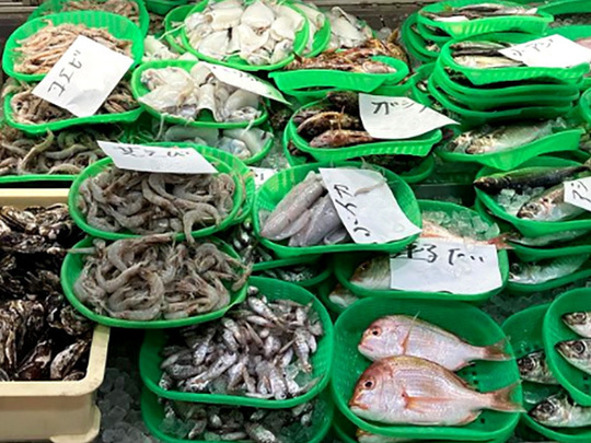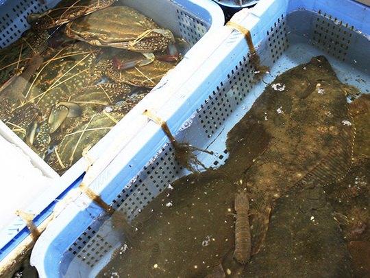 室津港に水揚げされた栄養豊かな播磨灘の海の幸を中心に新鮮でさまざまな種類の魚介が毎日店頭に並ぶ水産コーナーや