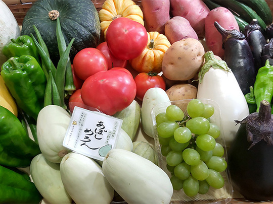 8月◎「ジャンボピーマン」・「オクラ」・「モロヘイヤ」・「新さつまいも」・「揖保川ぶどう」「いちじく」
