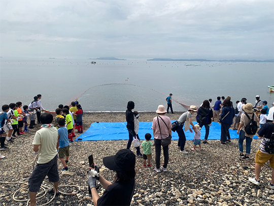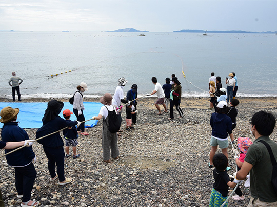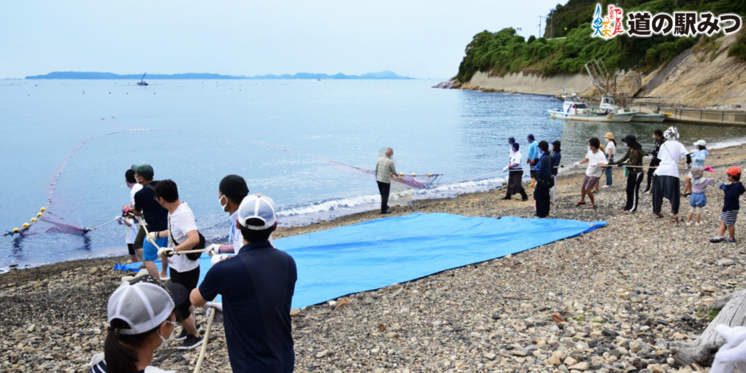 道の駅みつのプライベートビーチで地引網体験が可能です。