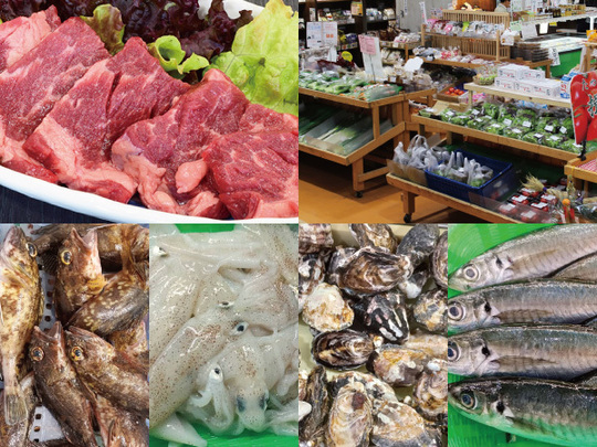 ・鮮魚(本庄貝、サザエ ほか多数)・地野菜・ご飯物・ソーセージ ほか
