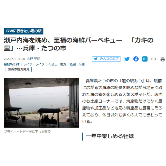 阪神間のお出かけ情報や子育て家族に役立つ情報をお知らせしている「阪神間を楽しもう♪トゥインクルfamilyのキラキラdays」のブログに道の駅みつが紹介されました。ぜひ、ご覧ください。
