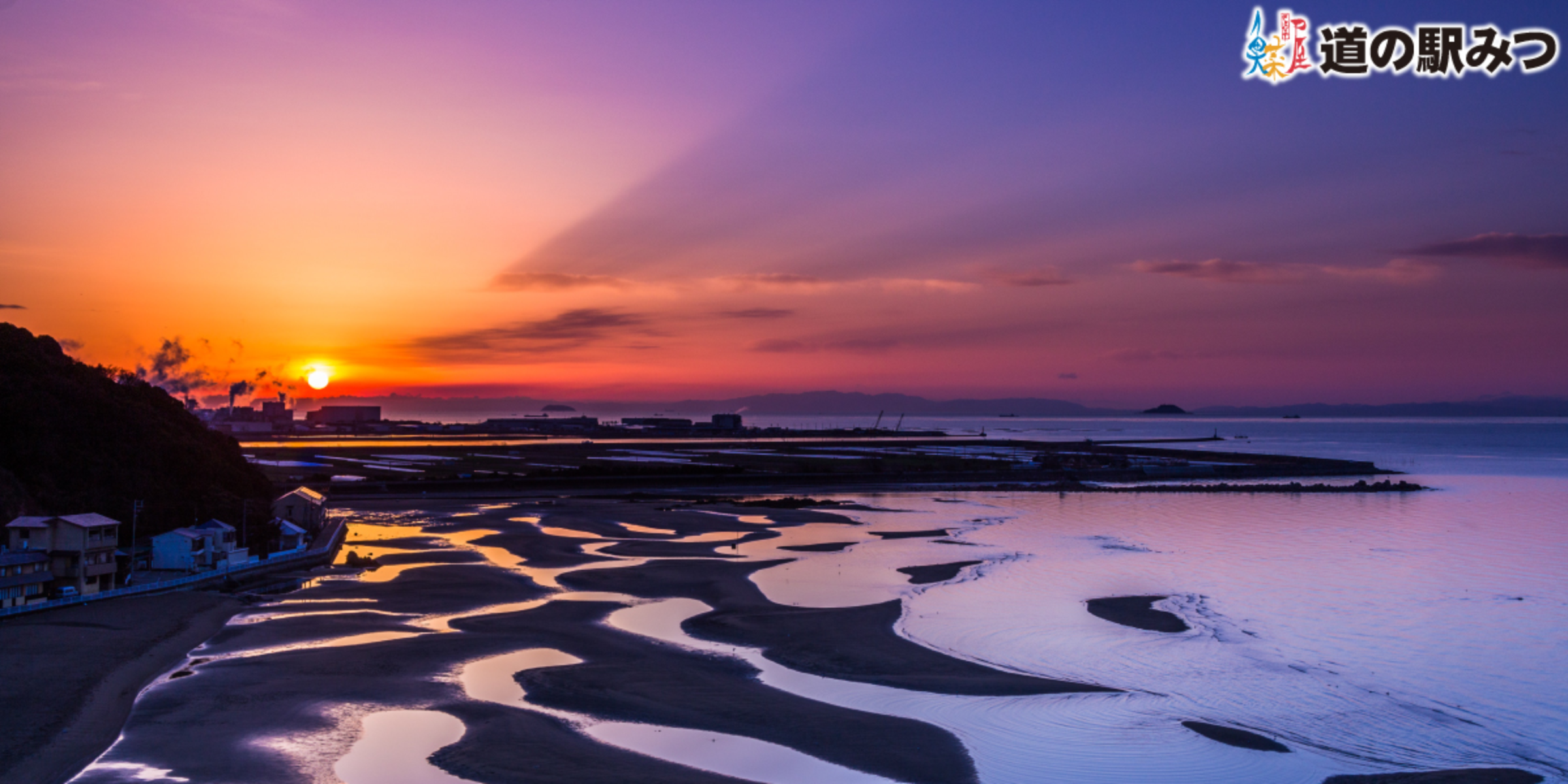 新舞子海岸の干潟は、浜辺から約500m、東西約1.5kmに広がり、日本有数の干潟の名所として知られています。4月から6月は潮干狩り、夏は海水浴、秋はおいしい魚を食べ、冬は空気が澄んでいるため、光が水面に反射して金色や薄紫色に輝き、とても幻想的な風景をご覧いただけます。1年を通じて海を楽しんでいただけるのは兵庫県下でもここ御津だけです。ぜひお越しください。